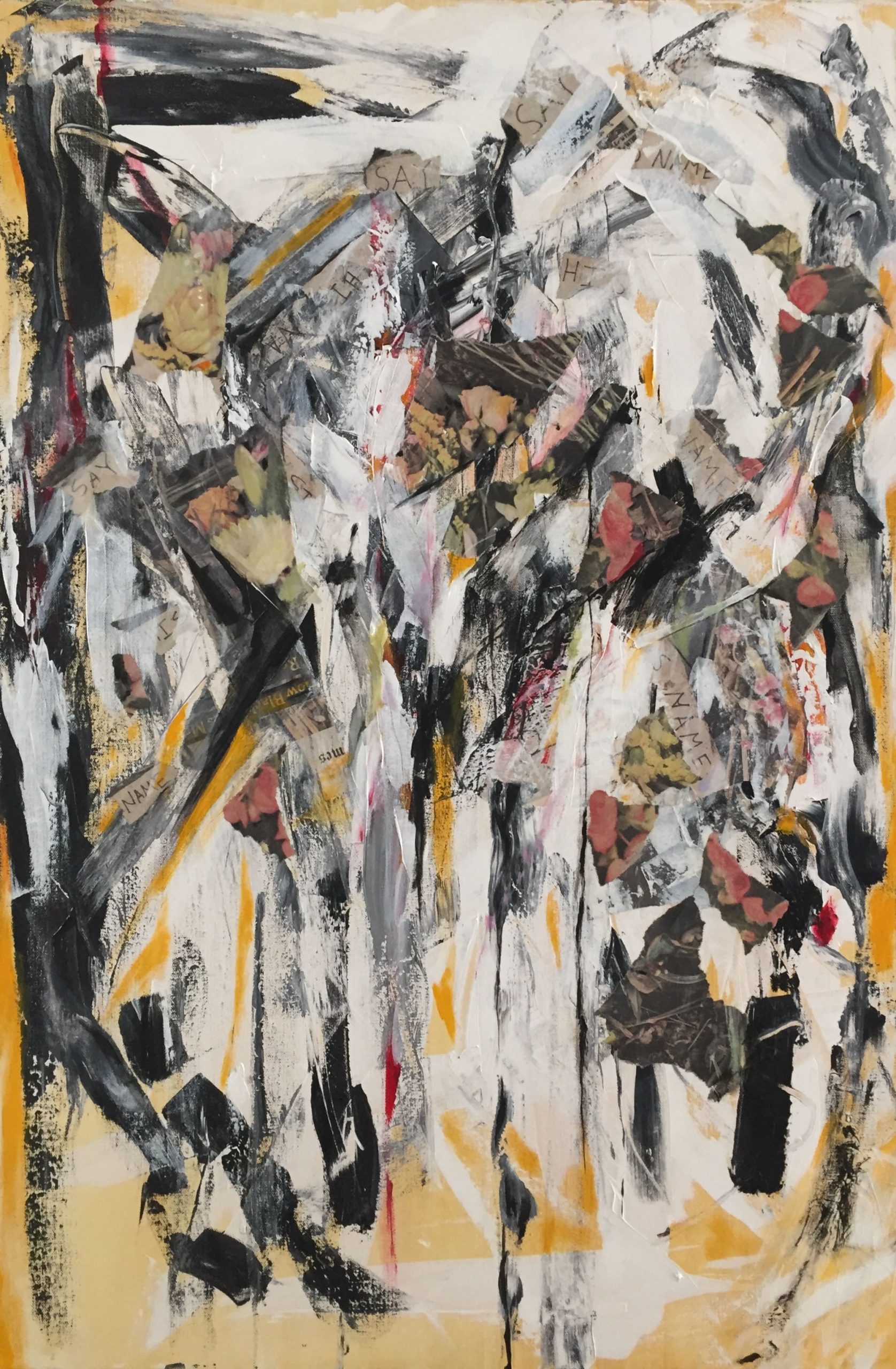 Untitled (Say his name) | Acrylic, newsprint on canvas, 36x24"$ 1200 Proceeds to benefit the Equal Justice Initiative